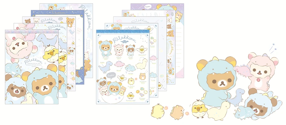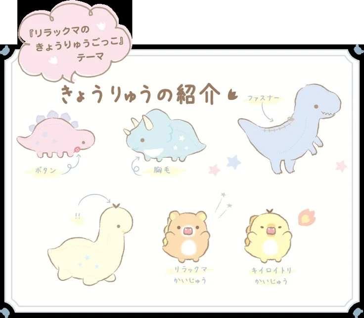 So cute~! The dinosaurs also have plush-like designs, making the Rilakkumas wearing them even cuter! As for the story (?) behind it......