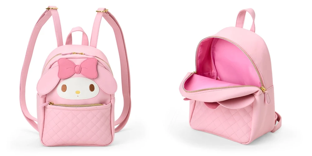 The ones I'm introducing today feature four characters: Hello Kitty, My Melody, Cinnamoroll, and Kuromi! They make the wearer's back look adorable too, so they’re perfect as part of your fashion style! Each backpack is approximately W20.5 × D13 × H25 cm (excluding ears, ribbons, and shoulder straps), and the shoulder straps can be extended from about 59 to 110 cm!