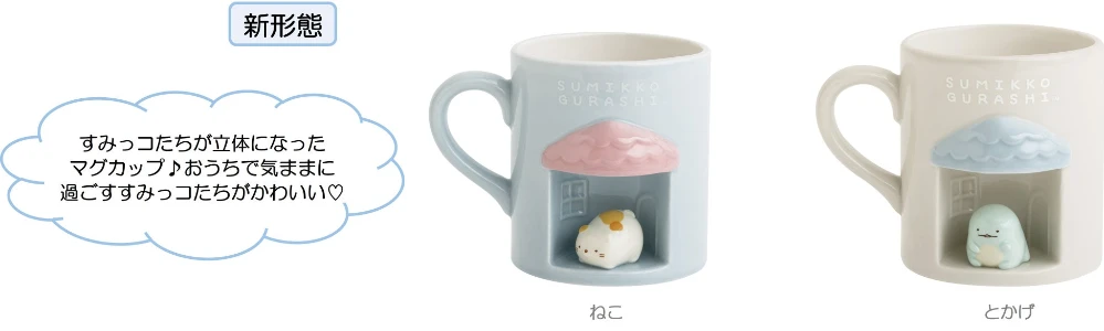 So cute~! It's adorable that they deliberately stay in the corner even though the key visual is drawn broadly...... So, this time! Let's check out the new merchandise theme, Sumikko's Favorites, where the Sumikko characters bring their favorite things to show us!