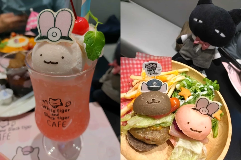 [White tiger and Black tiger] Popularity is Soaring in Japan! We Visited the Café of the Cute Character Content, White tiger and Black tiger, Starring a White Tiger and a Black Tiger (Shrimp)!