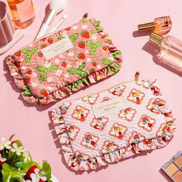 The lineup this time includes the usual plushies and keychains, of course, but also some slightly rare items like bags and even quite unusual tableware! Strawberries are incorporated into all the visuals as an accent, and they are so incredibly cute!