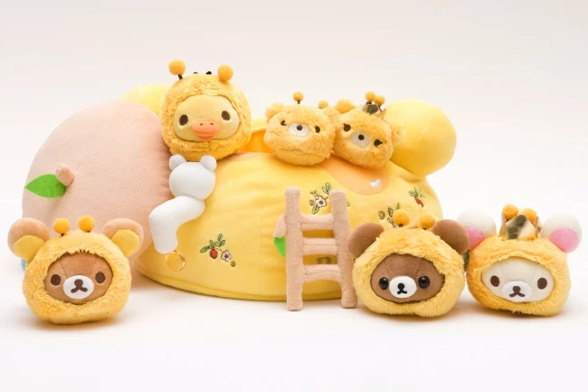 The way they harvest it is just too cute! So, everyone is gathering honey together this time! Since the theme is honey and bees, the lineup features quite a lot of plushies! After the main theme was released, even more items appeared as UFO catcher prizes, so there's a huge variety of adorable plushies and mascot keychains!