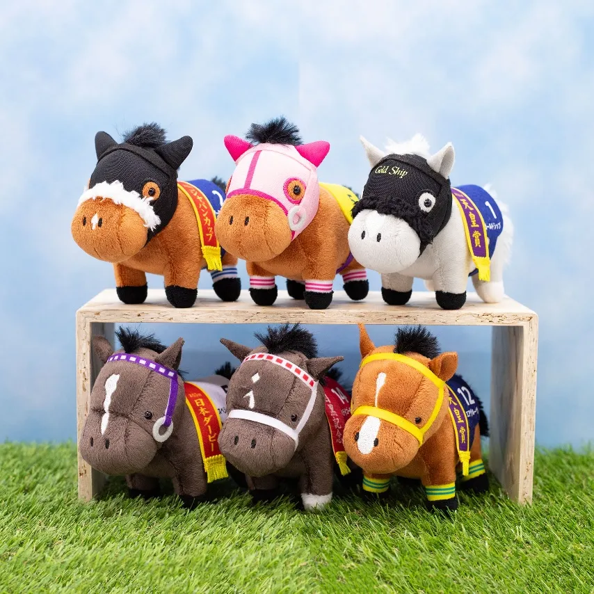 Today! Do you know about this cute plushie series inspired by Japanese racehorses!? They come in all sorts of sizes, and some of them are even wearing their victory wreaths!